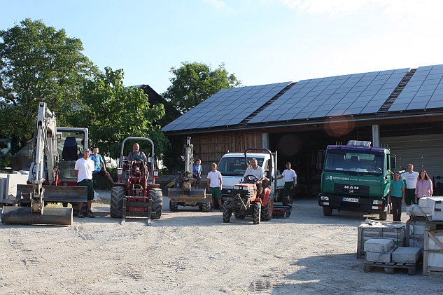 Außer Inhaber Armin Huber ist auch seine Frau Brigitte intensiv im Unternehmen tätig; sie ist für die Bürotätigkeiten sowie den Ab-Hof-Verkauf von Gartenmaterialien zuständig. Die gemeinsamen Kinder Michael (geb. 2003) und Xaver (geb. 2005) interessieren sich lebhaft für die in der Firma eingesetzten Maschinen. Auch Hans Huber und seine Frau Stilla engagieren sich nach wie vor in dem Familienunternehmen.