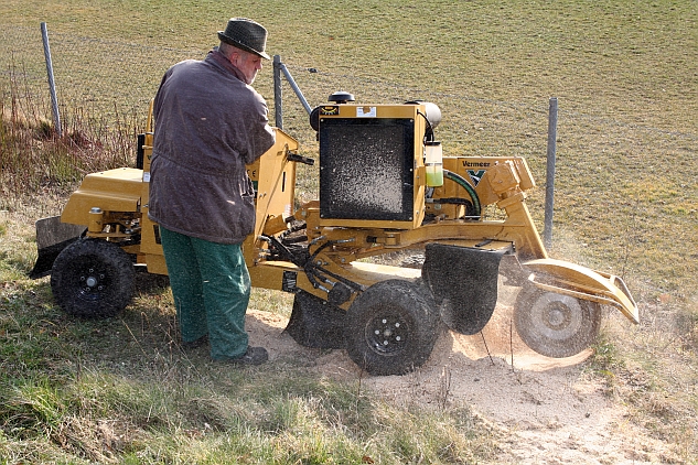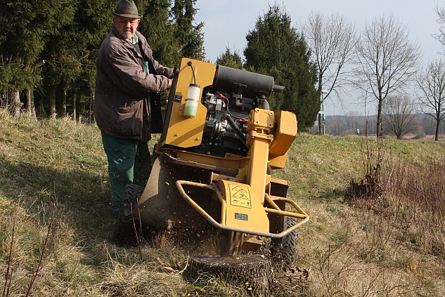 Nach Baumfällungen bleiben oftmals Wurzelstöcke übrig, welche die unbeschwerte Nutzung des Gartens beeinträchtigen. Mittels einer Spezialmaschine können wir Wurzelstöcke jedes Kalibers dauerhaft entfernen. Als minimale Durchfahrtsbreite für unsere selbstfahrende Maschine genügen bereits 110 Zentimeter.